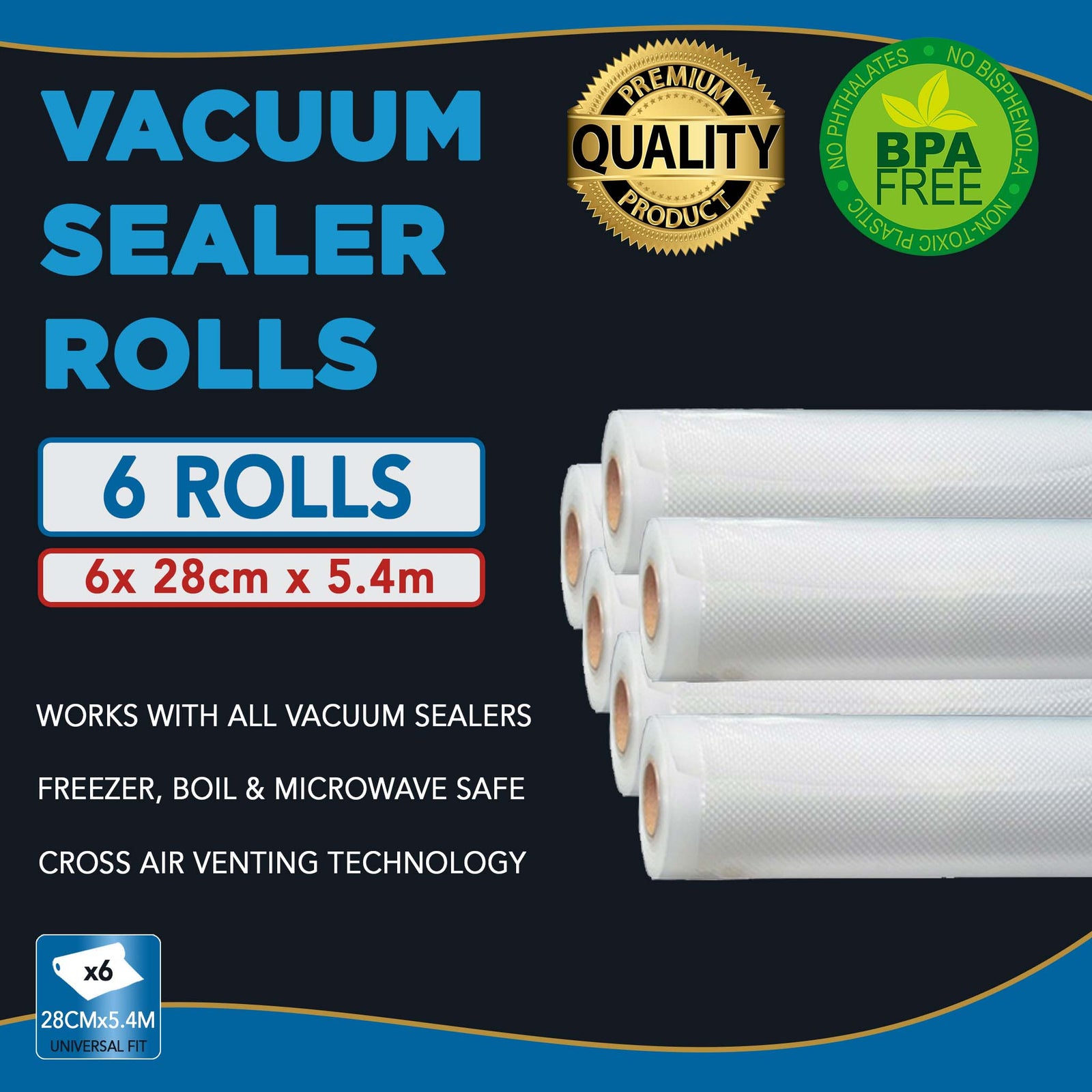 Pro-line Premium Vacuum Sealer Rolls 28cm Wide (3 Rolls Total)